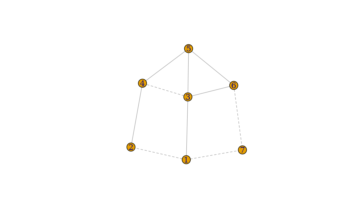 ig <- igraph::graph(edges = c(1,2, 1,3, 1,7, 2,4, 3,4, 3,5, 3,6, 4,5, 5,6, 6,7), directed = FALSE)