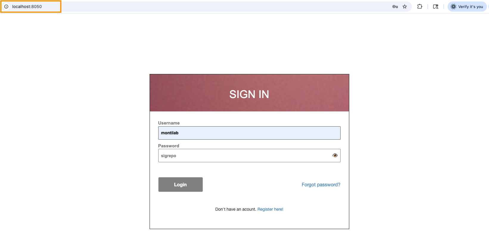 Note: Try to login with default username = “montilab” and password = “sigrepo”